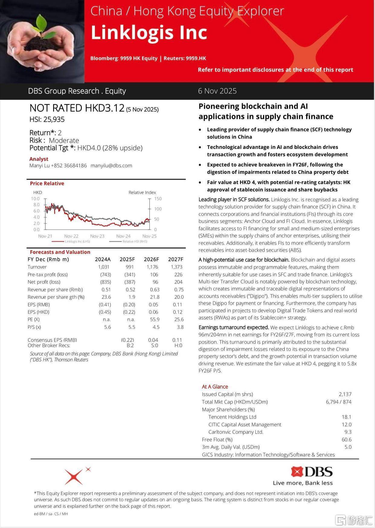 同时,星展银行(DBS)发布联易融研报,明确看好联易融的增长潜力,指出其在数字资产领域的前瞻布局已成为重要增长催化剂。报告提及,联易融此前深度参与国际清算银行创新中心"Project Dynamo"、新加坡金融管理局"Project Guardian"等国际前沿金融科技项目,成功探索出数字贸易代币、资产支持代币在跨境金融场景的落地路径。随着2026年初香港稳定币发行许可落地预期升温,公司相关业务的增长空间将进一步打开。